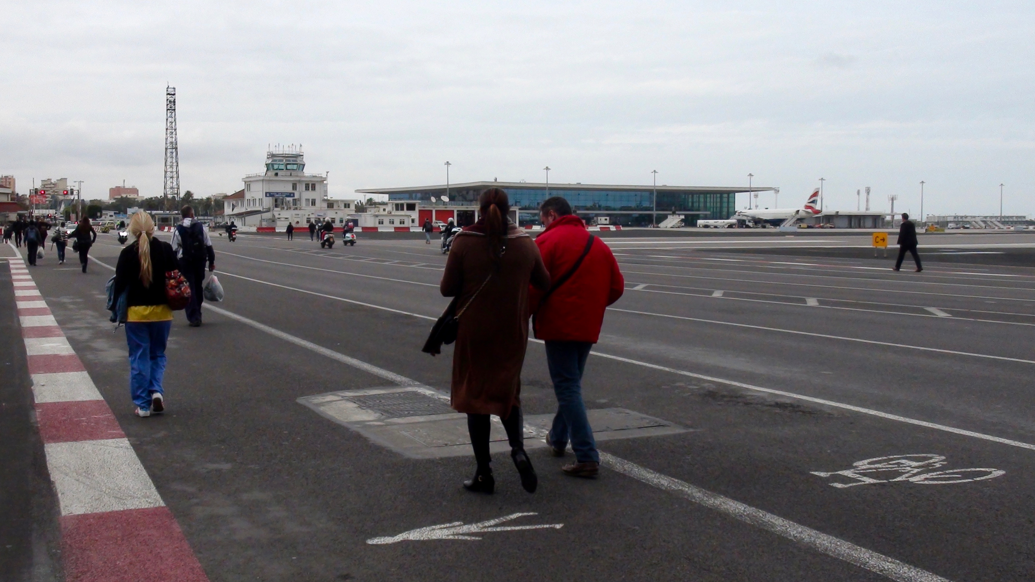 Autre particularité qui surprend, pour rejoindre la ville anglaise, on traverse les pistes d’envol de l’aéroport et c’est quand même assez large. De chaque coté bien sûr il y a des barrière et tout le monde s’arrête lorsqu’un avion atterri ou décolle. C’est comme un passage à niveau sauf que là, c’est pour les avions. Faudra que j’aille voir ça.