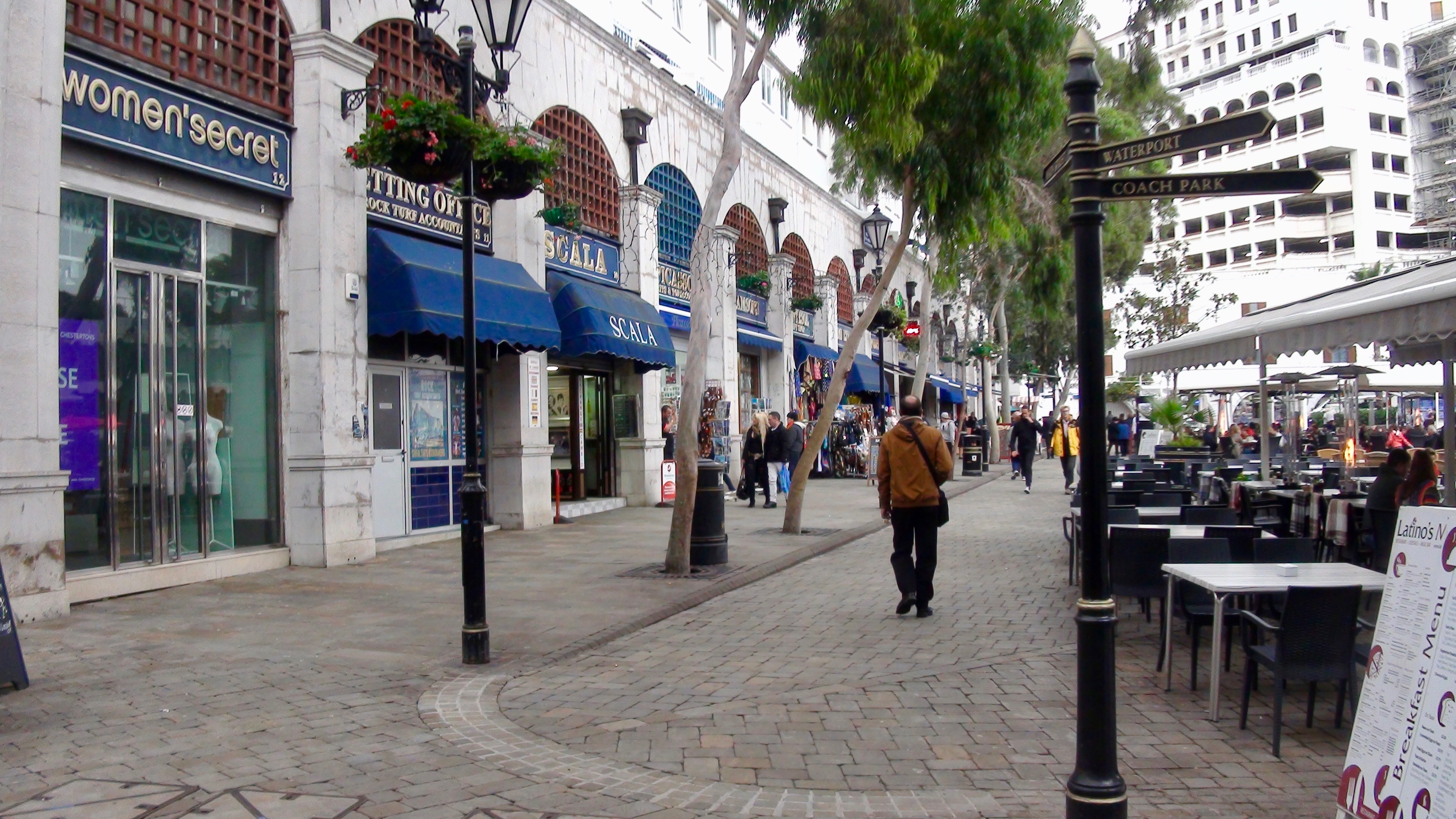 Après un premier parking vu sur park4night mais un peu trop cher à mon goût et n’ayant pas besoin des services proposés (12 euros avec nuit et services mais sans électricité) je me rabat sur un autre parking près du stade de foot à 3 euros surveillé et pas trop loin de la frontière. Parce que l’intérêt ici, il se trouve de l’autre coté, en Grand Bretagne …. ! Je me pose donc et en prenant mon temps, je rejoins cette ville anglaise en Espagne. Ça fait une trotte mais ça fait de la marche à pied.